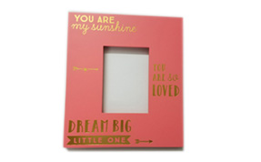 加工工艺:底材颜色白色+喷粉红色底漆+烫金+手感UV
